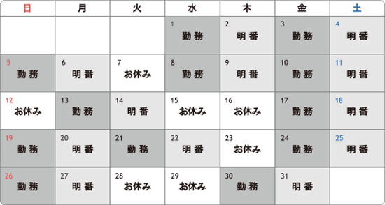 休日・休暇 | シフトにより公休月6~8日 事前相談により希望日の休日取得も可能です。 | |||